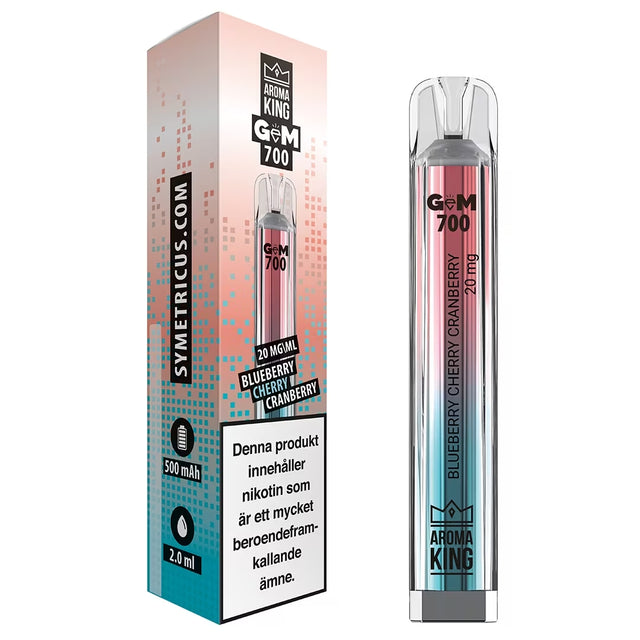 El Vaper Desechable Aroma King GEM Blueberry Cherry Cranberry combina el sabor dulce y ácido de Blueberry, Cherry y Cranberry.